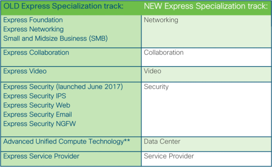 bisherigen «Express Networking» Spezialisierung auf das Ende des Cisco FY18 hinausgeschoben.